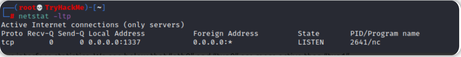 下面是使用 root 权限运行的相同命令,并揭示了 2641/nc(netcat)这个信息。