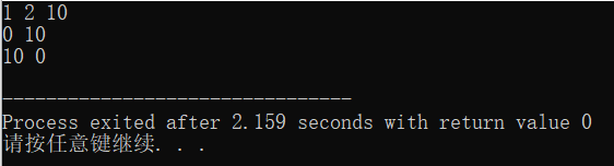 节点1到节点2的距离为10故输出的map[1][2] = map[2][1] = 10