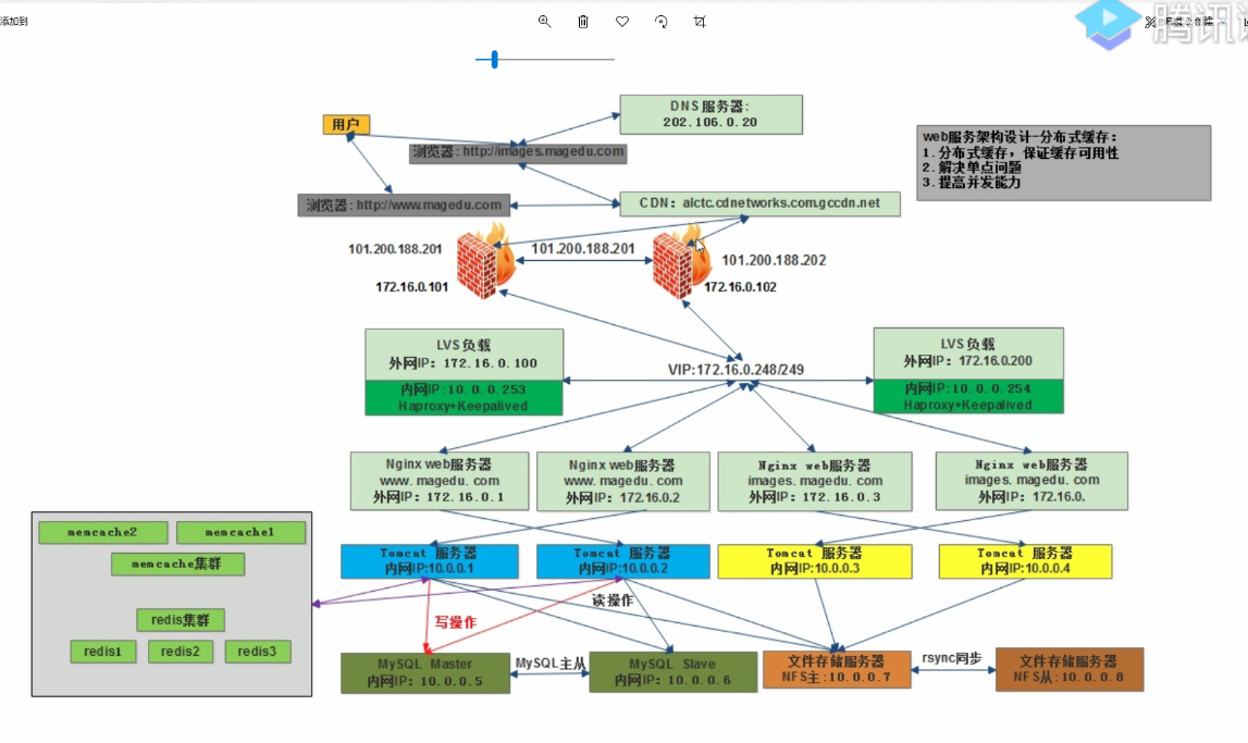 服务器数据存储的地方(数据库)主从复制 ,主服务器可写,从服务器只读。 NFS,储存rsync 实时同步