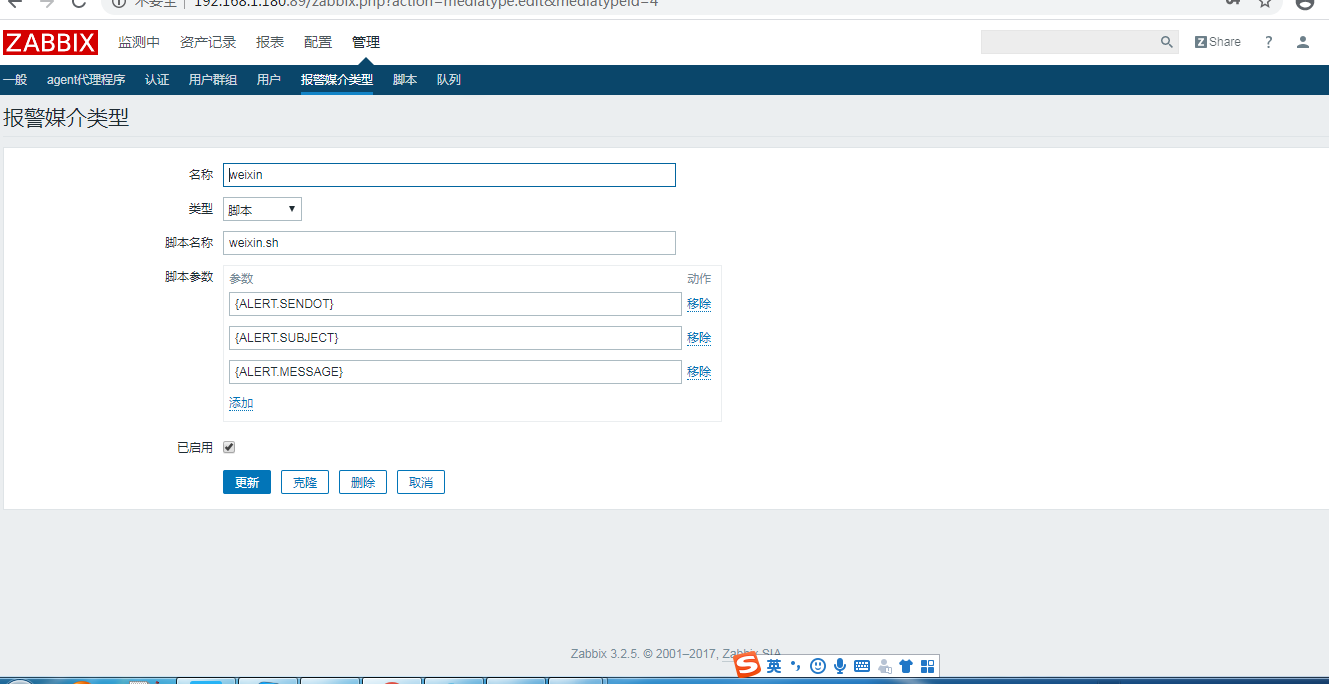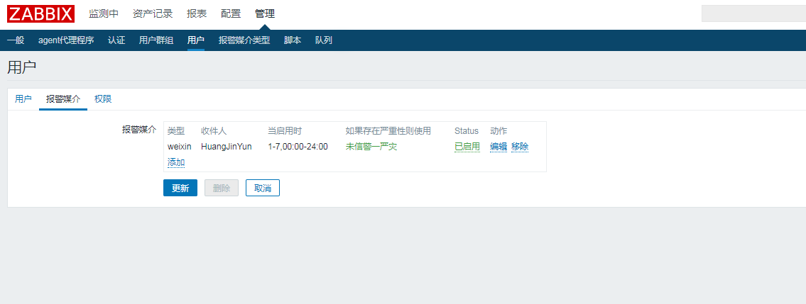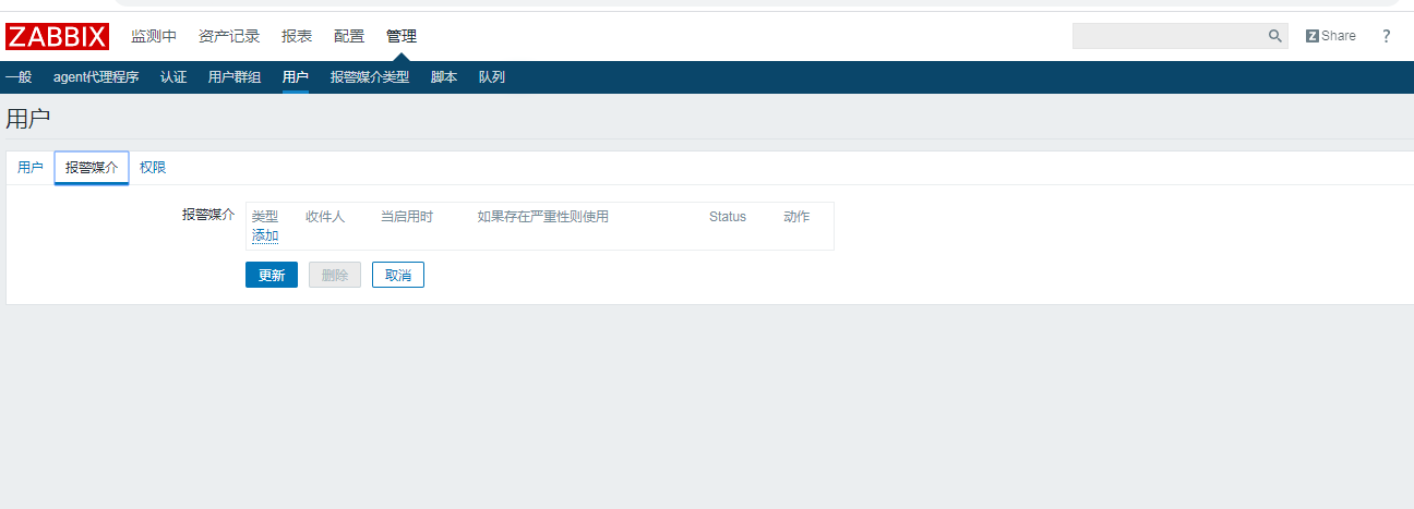 点击配置里的用户在点击服务器名 在点击报警媒介添加: