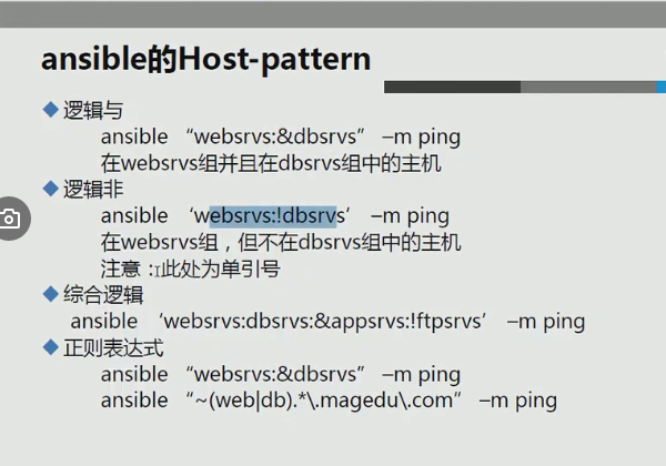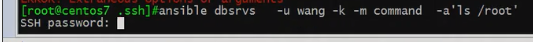 链接主 ansible dbsrvs -m ping -u 登录的用户名 -k 输入登录登录用户名的密码