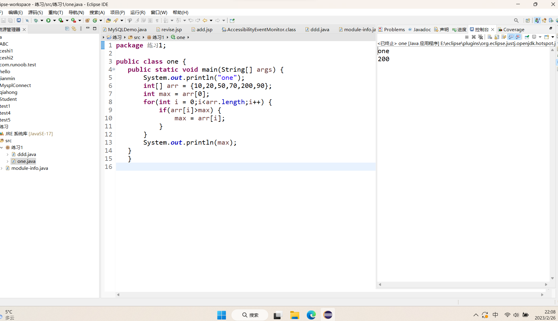 练习敲代码速度,编写一小串代码求最值: