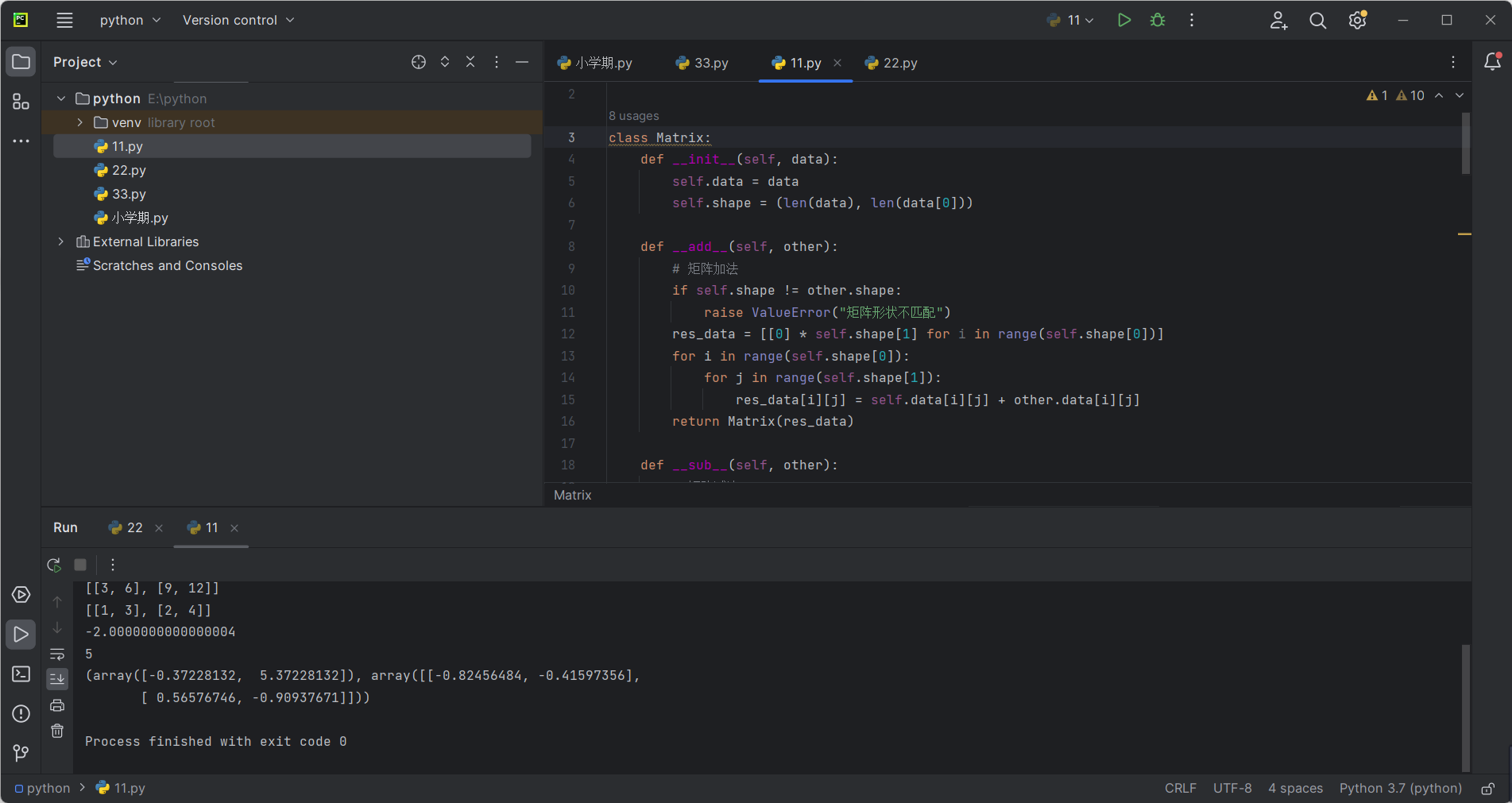 print(mat1 * mat2) # 输出矩阵mat1和mat2的乘积