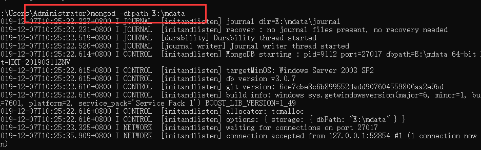 1.下载mongodb,然后解析,放在比较浅的文件目录