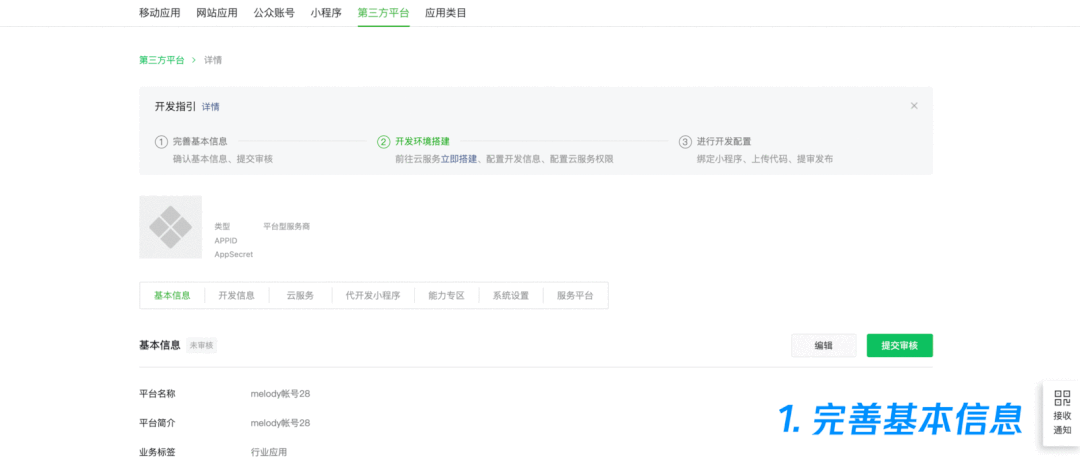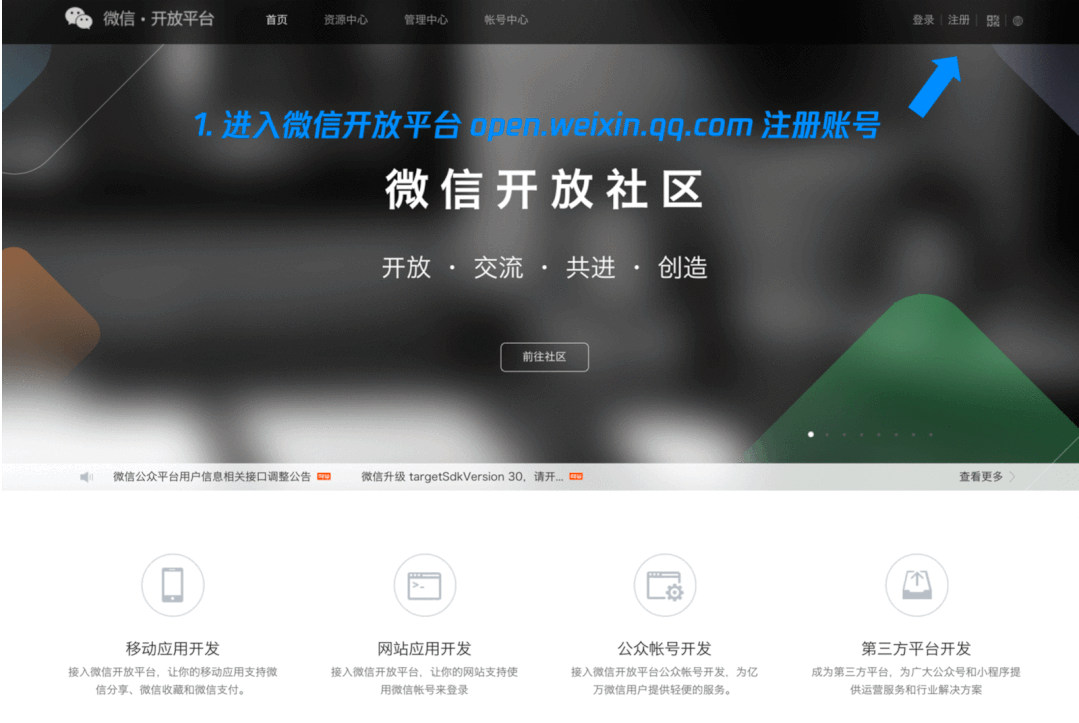 为了方便第三方开发者快速了解第三方平台功能、展开第三方平台开发测试等事宜,第三方平台现已支持个人注册开放社区账号后,创建第三方平台账号用于测试,6 个步骤即可开通成功。详情可查看 官方文档。