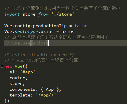 4.在vue选项配置里配置上仓库:store