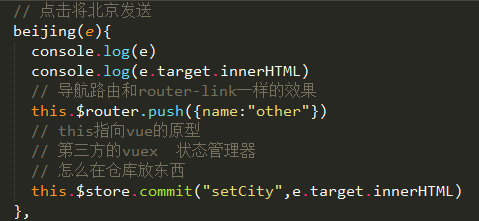 最后在hello页面点击就可以把xx城市带到other页面了,这样就完成了vuex的使用