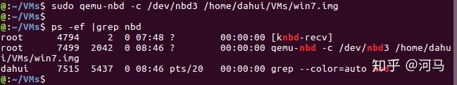 虚拟化程序QEMU中的qemu-nbd程序也是基于NBD方式对块设备或文件进行挂载,例如可以通过qemu-nbd命令查看一个虚拟机镜像文件的内部信息。