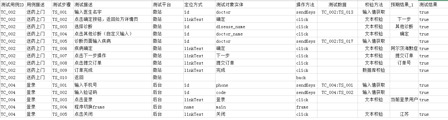 - 前端微站和后台系统的用例可整合在同一excel中,这样可实现前端与后台的闭循环测试