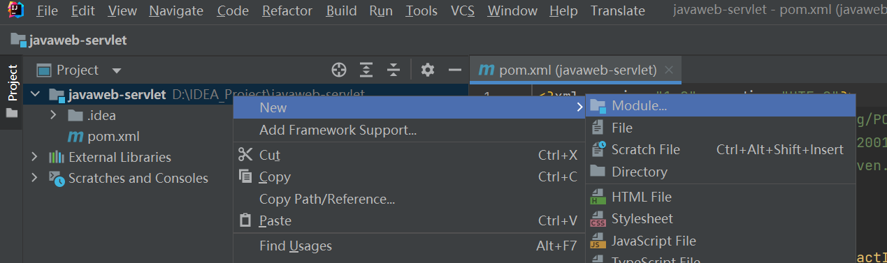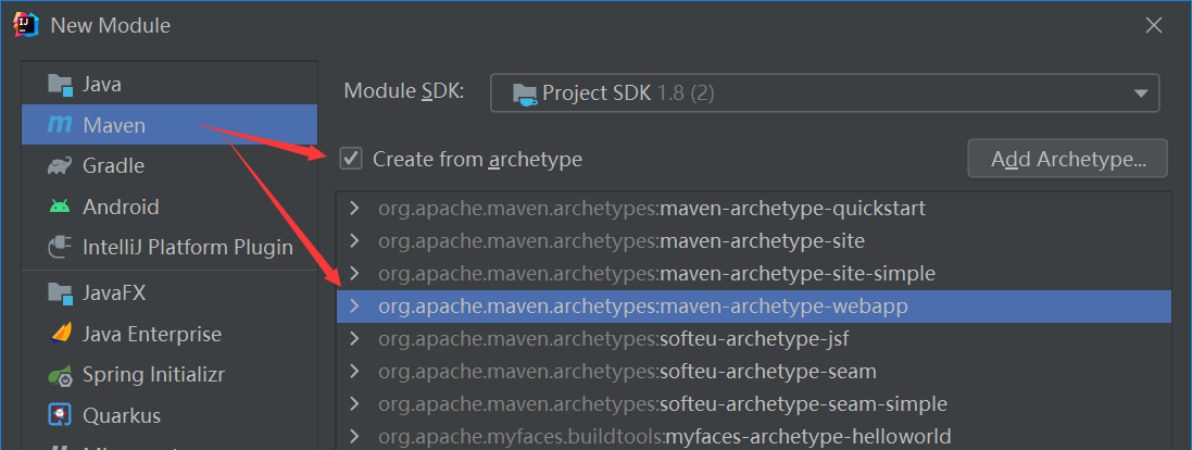 选择Maven项目,以直接建org.apache.maven.archetypes:maven-archetype-webapp,或者不勾选Create from archetype,建立普通maven项目,再在里面建立webapp子Module