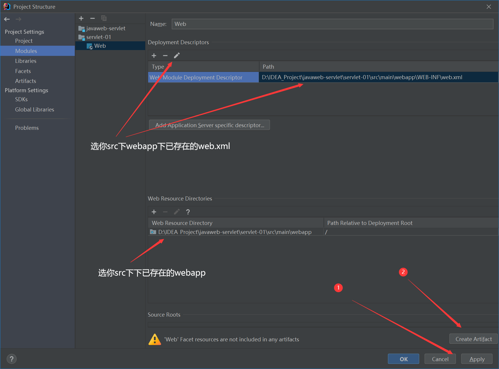 【重点】配置Facets、Artifacts,没配置好Tomcat启动后404