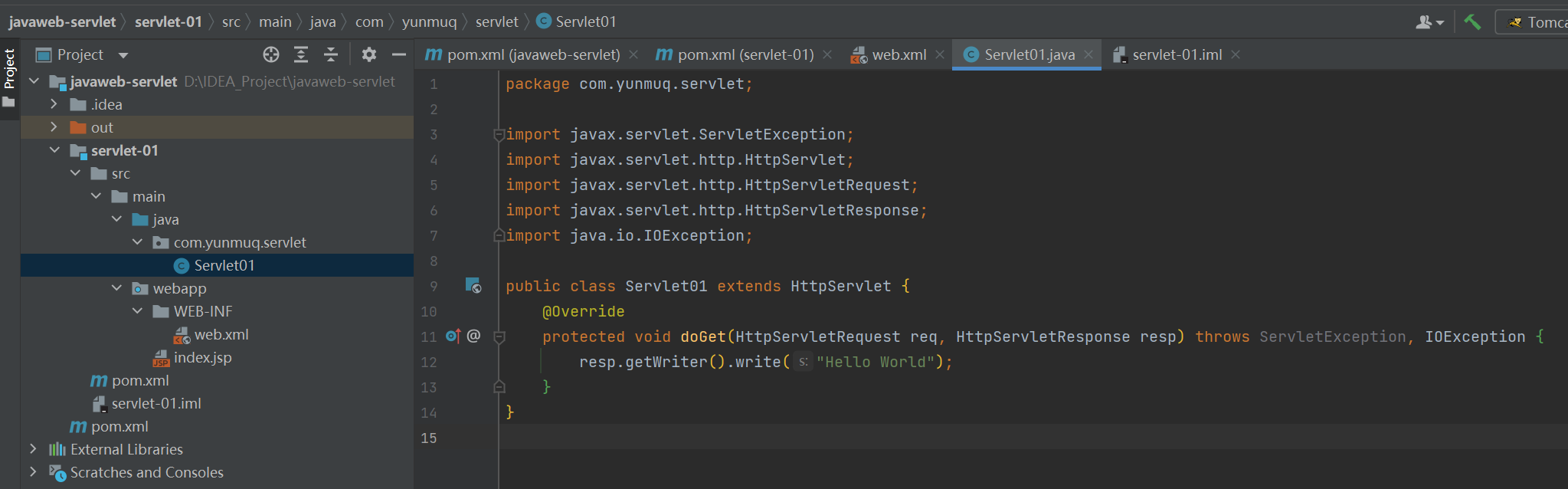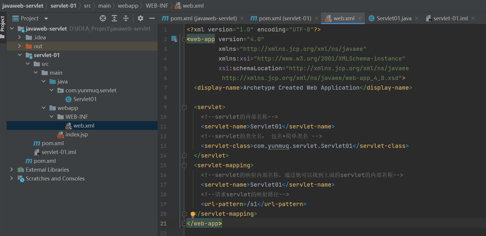 <servlet-class>com.yunmuq.servlet.Servlet01</servlet-class>