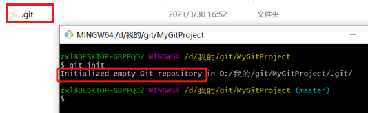 1 git init 初始化一个空仓库 初始化仓库后 会自动生成一个.git文件