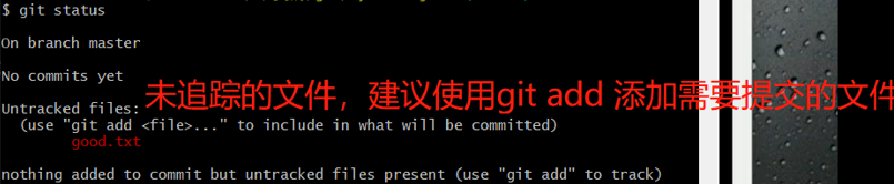 只会删除暂存区的good.txt 不会删除本地 所以查看状态还是显示跟当初一致“有未追踪的文件”