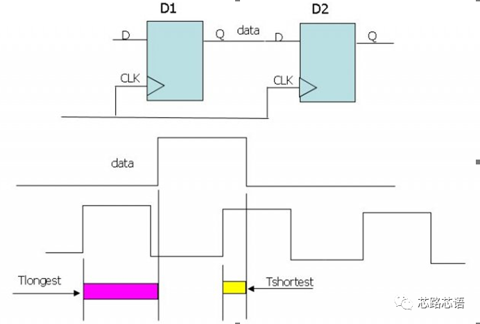 有了路径的概念之后,我们可以分析更复杂的setup time 和 hold time 。 dc中对于建立时间的分析是基于路径的最大延迟;而对于保持时间的分析是基于路径的最小延迟。
