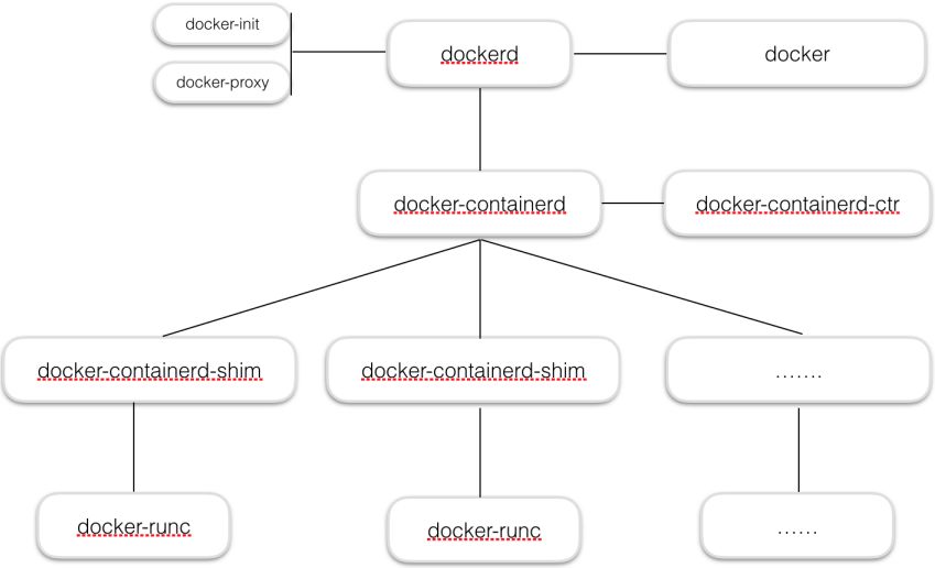 docker-containerd-shim:一个位于运行时实现前面的小垫片,它允许它重新分配来初始化并处理来自调用者的重新附加。