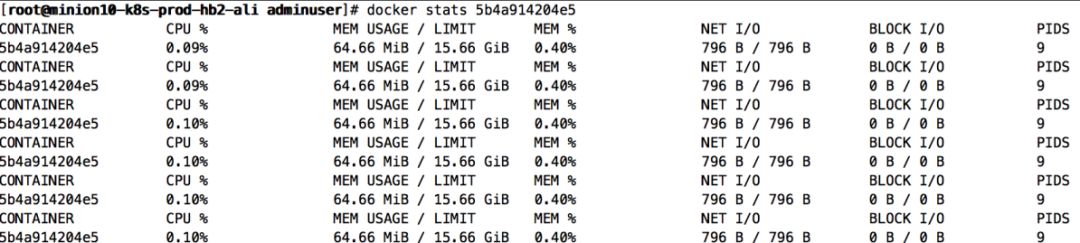 8.查看容器运行状态:docker stats容器ID|容器名
