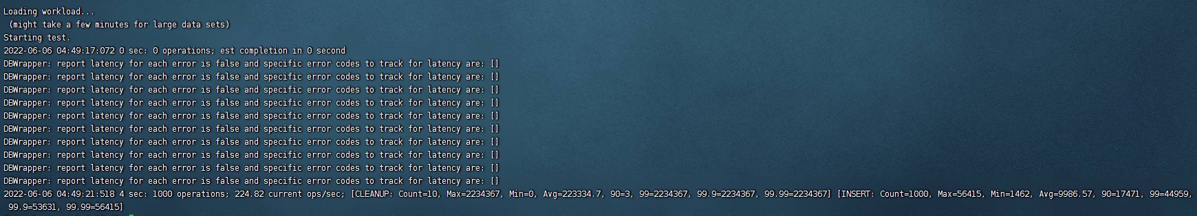 进入ycsb-0.15.0目录下加载数据库并运行ycsb基准测试