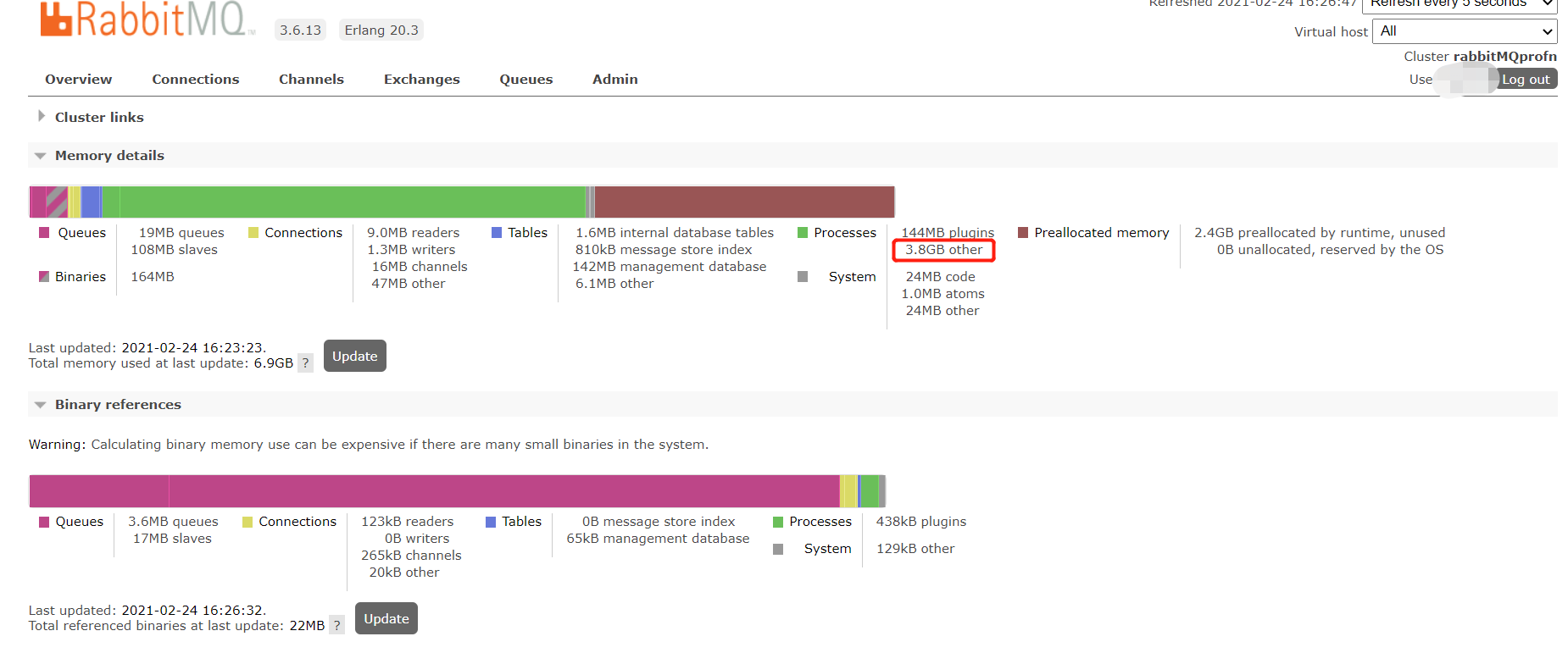 已恢复可以使用,但是Erlang processes 分布异常需进一步跟进处理,erlang内存分析方法: https://www.cnblogs.com/yunqingtuo/p/14445682.html