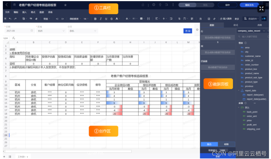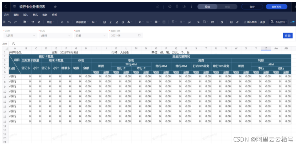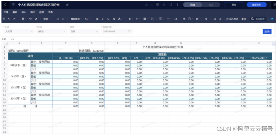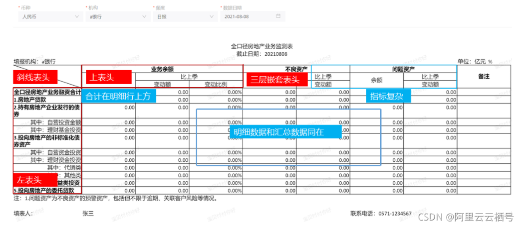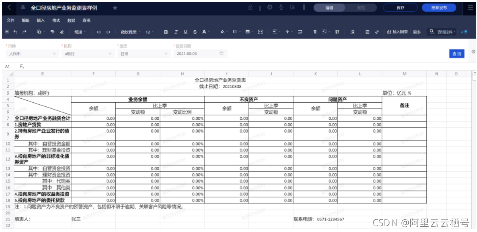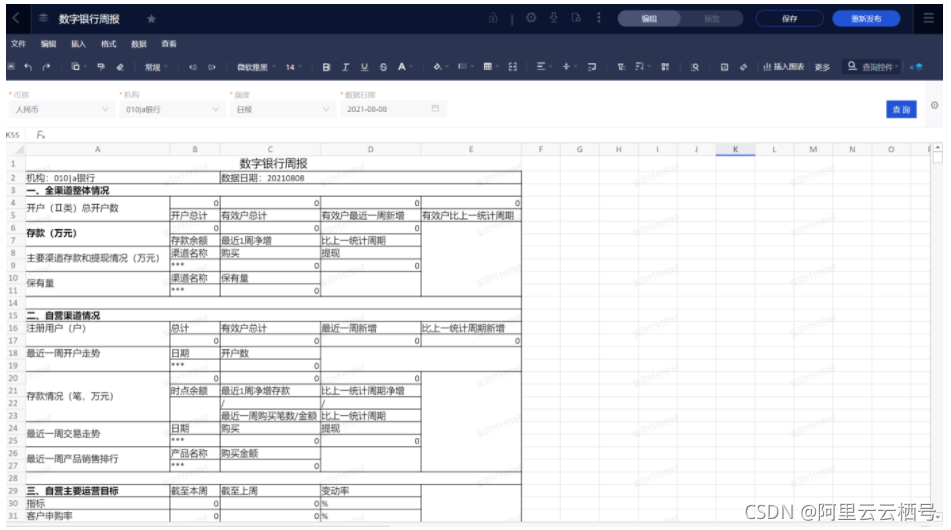 接下来以某金融行业客户复杂报表场景为例,带大家了解下Quick BI电子表格的能力。