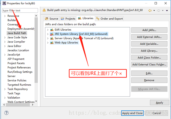 若JSP文件有红叉×,首先要检查项目本身的JRE版本是不是跟你使用的JRE版本一致