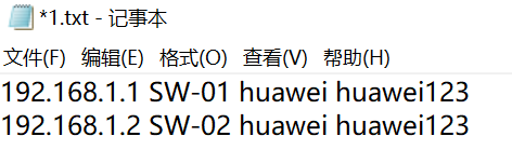使用到的脚本是vbs脚本,还有一个list.txt存放交换机的登录账号密码的。