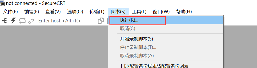 2、点击执行,然后出现选择vbs文件的框,找到你存放的文件夹,打开备份.vbs脚本,点击打开,如无意外,可以看到脚本已经正常打开你想备份的设备,自动执行备份配置的操作,如果出现报错,就需要你重新审核你的vbs脚本和list.txt文本了。