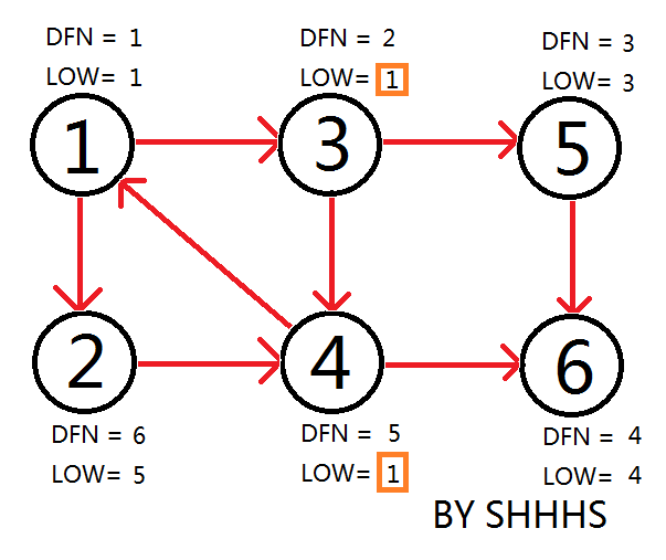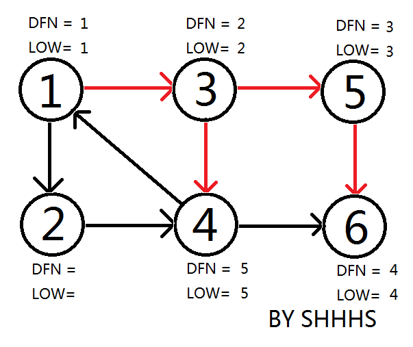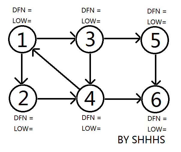继续用上面那个栗子来展示Tarjan算法的过程:
