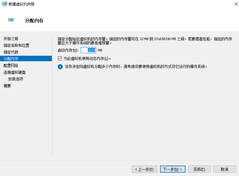 根据安装的操作系统及虚拟机用途,配置内存大小。