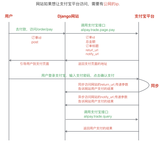 - 处理支付宝的notify_url(异步通知),当支付宝完成订单支付后就会向notify_url发送post请求,告知商户支付成功
