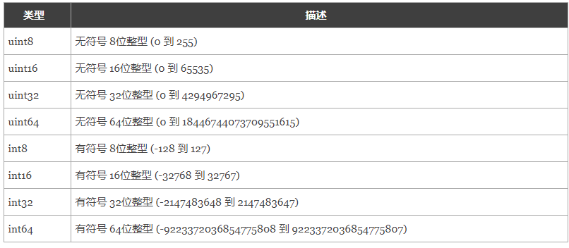 整型分为以下两个大类: 按长度分为:int8、int16、int32、int64 对应的无符号整型:uint8、uint16、uint32、uint64