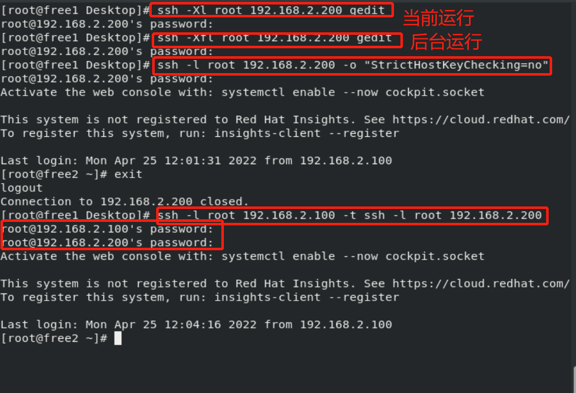 ssh -l root 192.168.2.100 -t ssh -l root 192.168.2.200