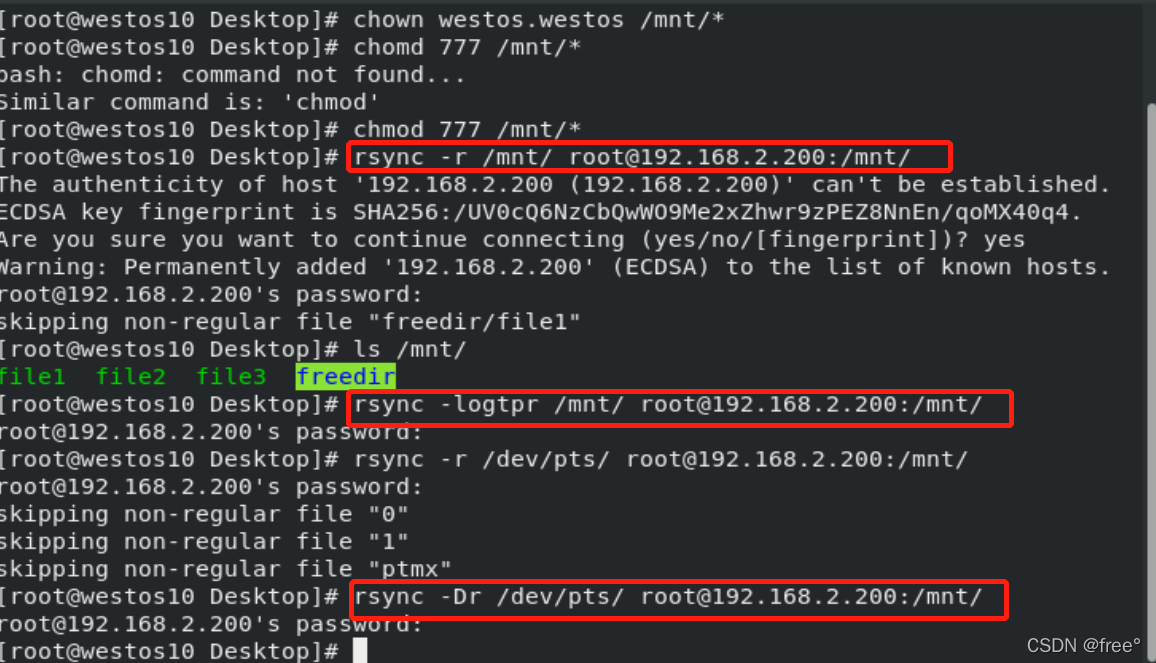 rsync -r /mnt/ root@192.168.2.200:/mnt/ ##同步目录本身其目录中的文件