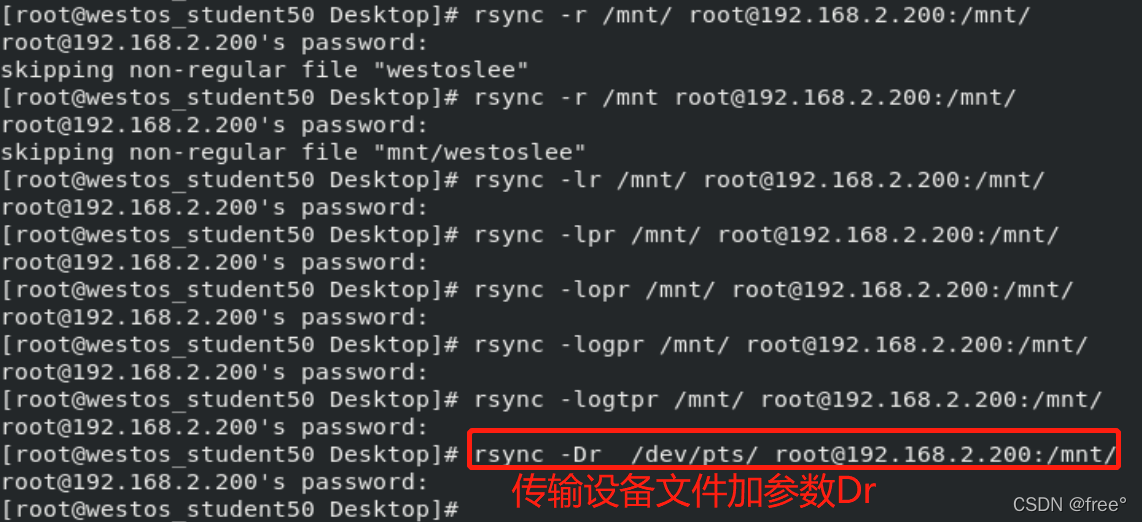 rsync -rD /dev/pts/ root@192.168.2.200:/mnt ##同步设备文件