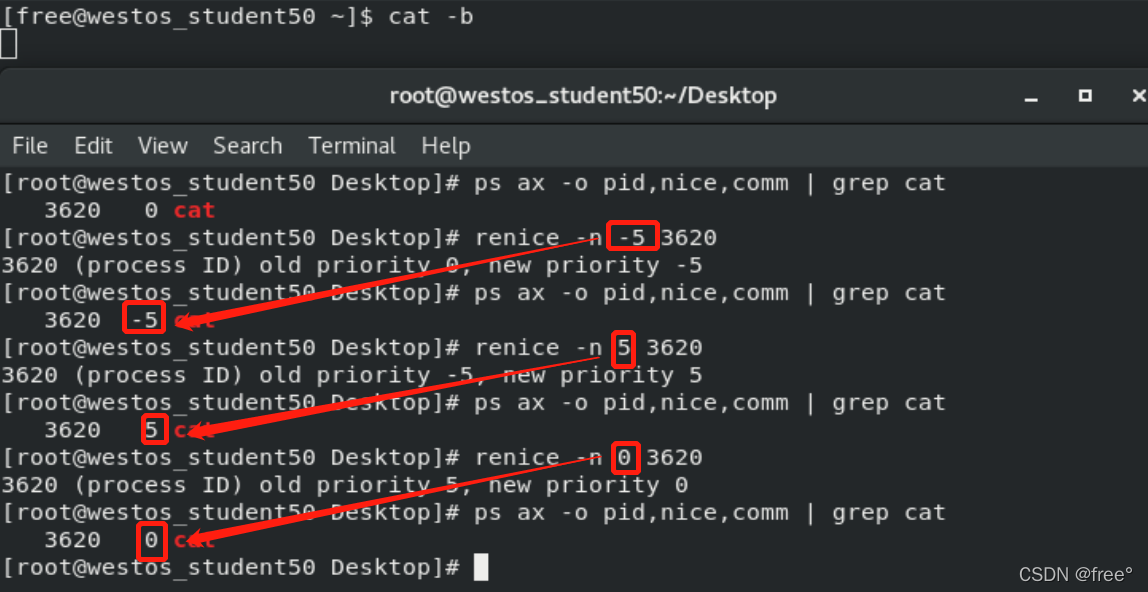 ps ax -o pid,nice,comm | grep cat 优先级更改后的查看命令