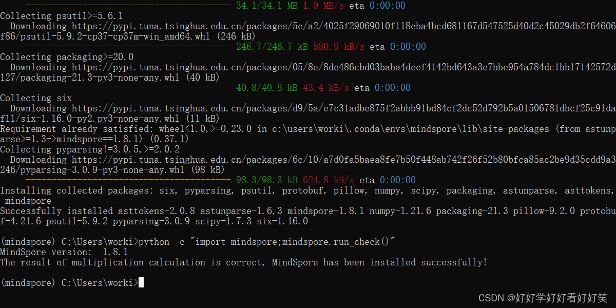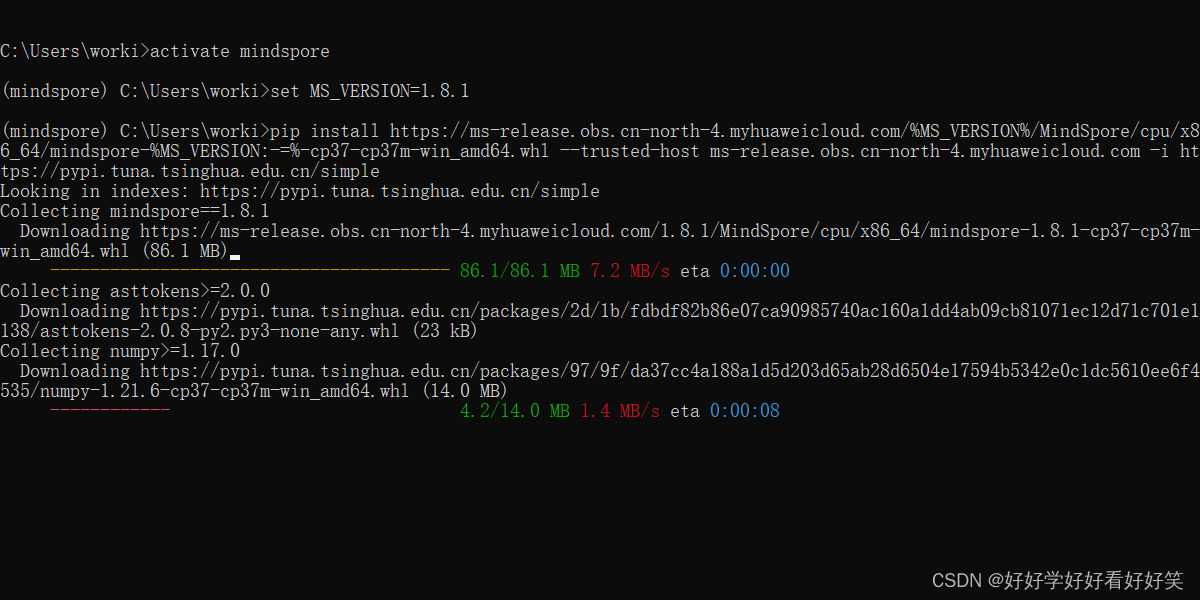 目前MindSpore支持Python 3.7-3.9任意版本,下面创建的是3.7.5的pyhton env就叫做mindspore:
