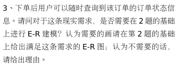 由于查询是对于数据库的操作而不是实体之间的联系,所以查询订单状态不需要进行E-R建模。
