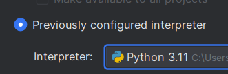 2.由于PyCharm需要以“工程”为单元,则在编写代码之前需要先建立一个工程;进入PyCharm软件之后选择文件创建位置(建议提前建立好存储代码的文件夹,之后直接选择即可),并选择解释器,之后创建即可;