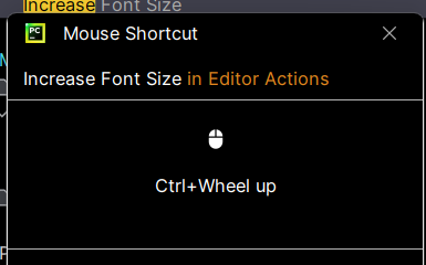 但是感觉这样对比字体的大小不是那么直观,可以添加一些快捷键:ctr + 鼠标滚轮向上:字体变大,crt + 鼠标滚轮向下:字体变小;