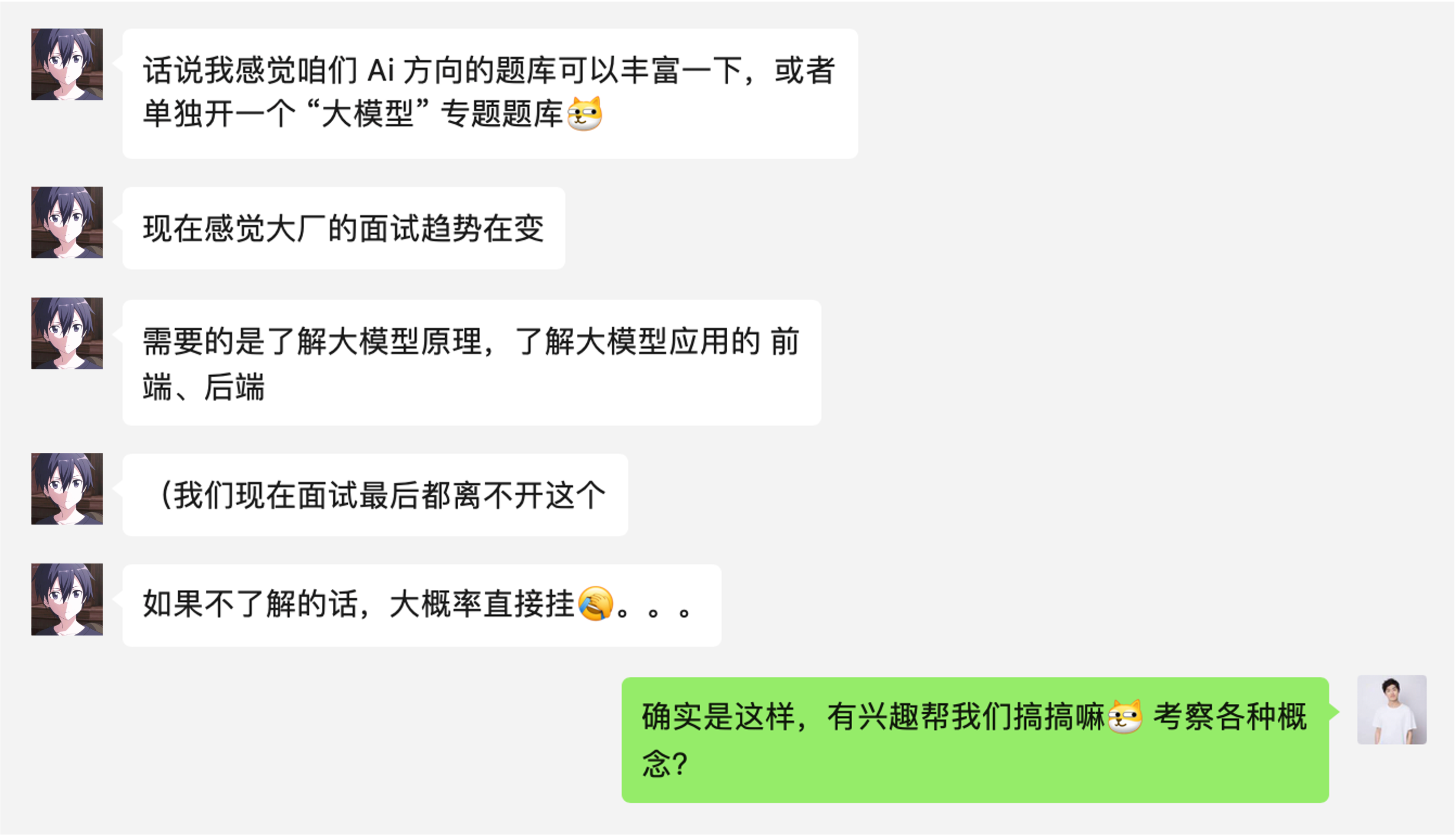 于是我直接顺手牵羊,邀请他帮我们提供一些企业面试时问到的 AI 题目,也算是造福大家了~