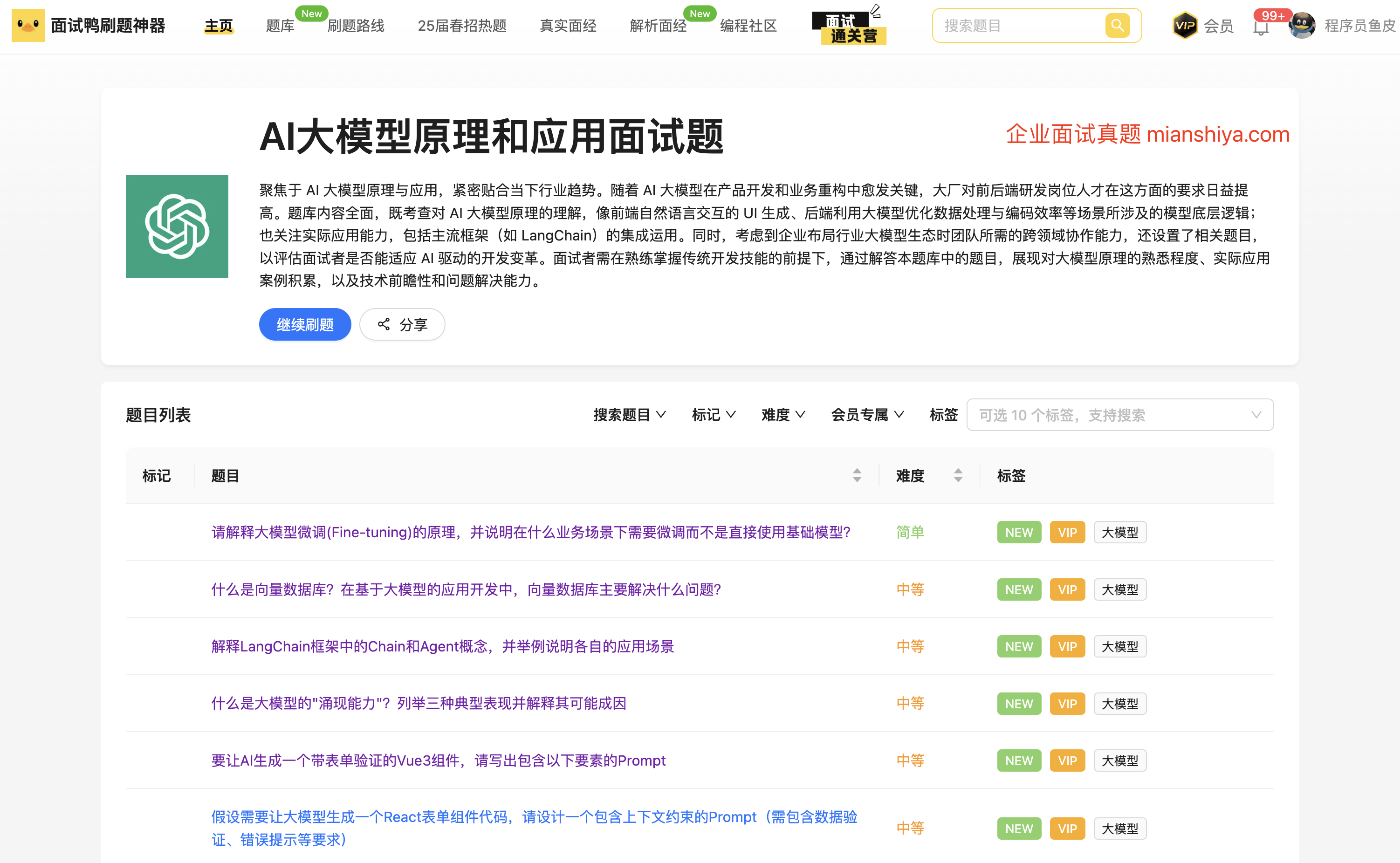 我们的面试鸭刷题神器也新增了 AI 大模型原理和应用面试题库 ,很多题目是通过大厂真实面试收录来的,够与时俱进吧~ 而且还在持续不断地更新哦!