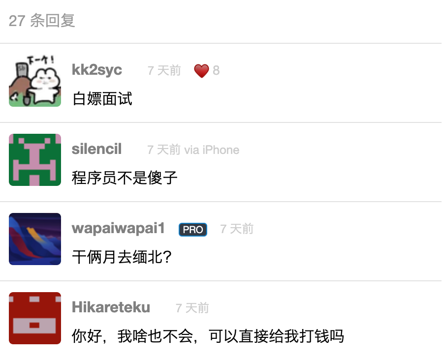 但是,程序员朋友们还是比较清醒的,条件太好必有反常,连公司名称都不放?怕不是白票候选人的代码吧?