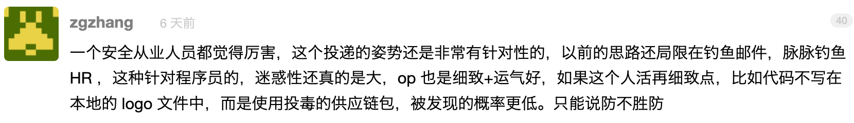 如果是我的话,估计早就中招了。求职心切,说不定我收到对方发来的代码后就嘎嘎一顿猛干,然后胸有成竹地等着对方发来的 Offer 呢。