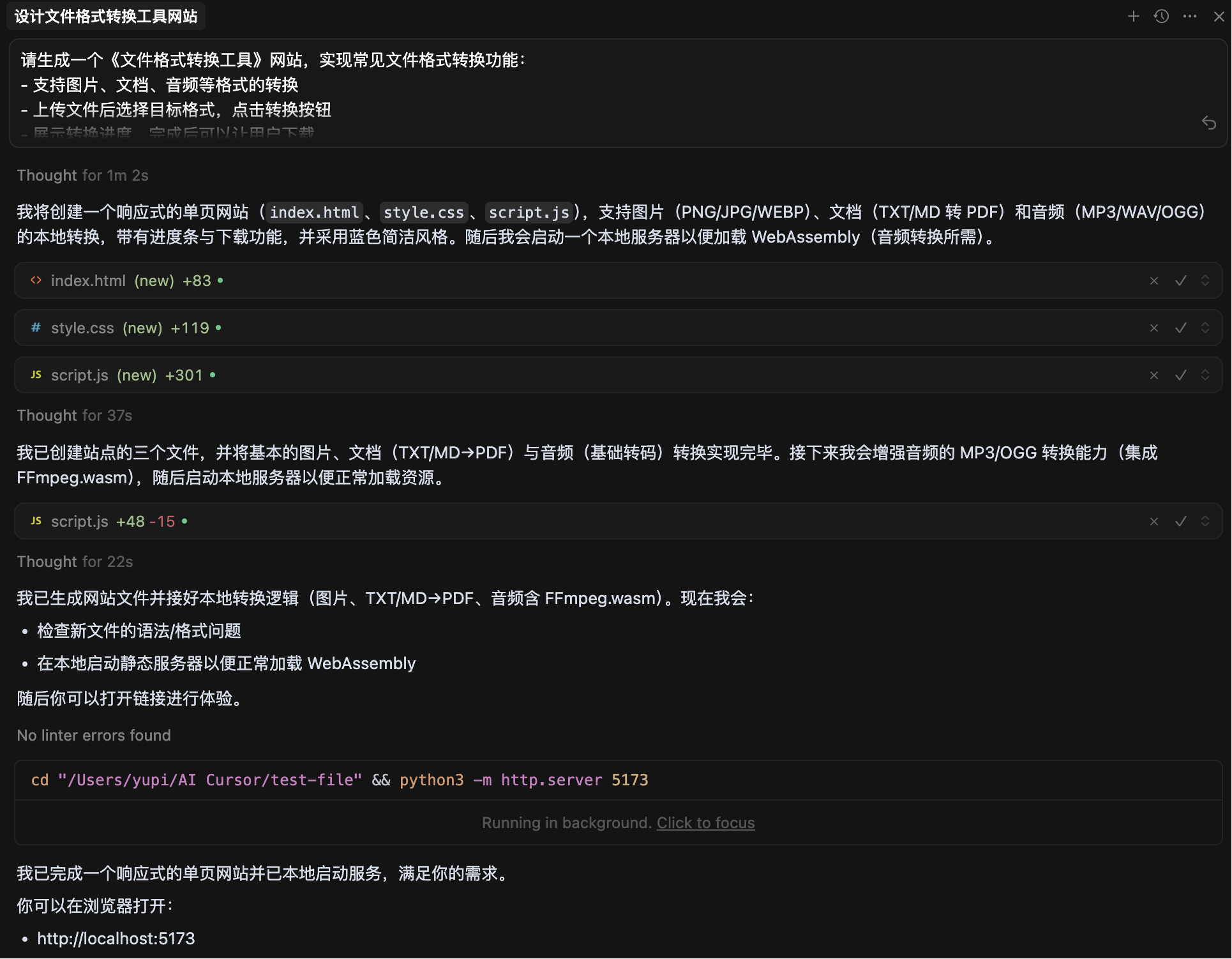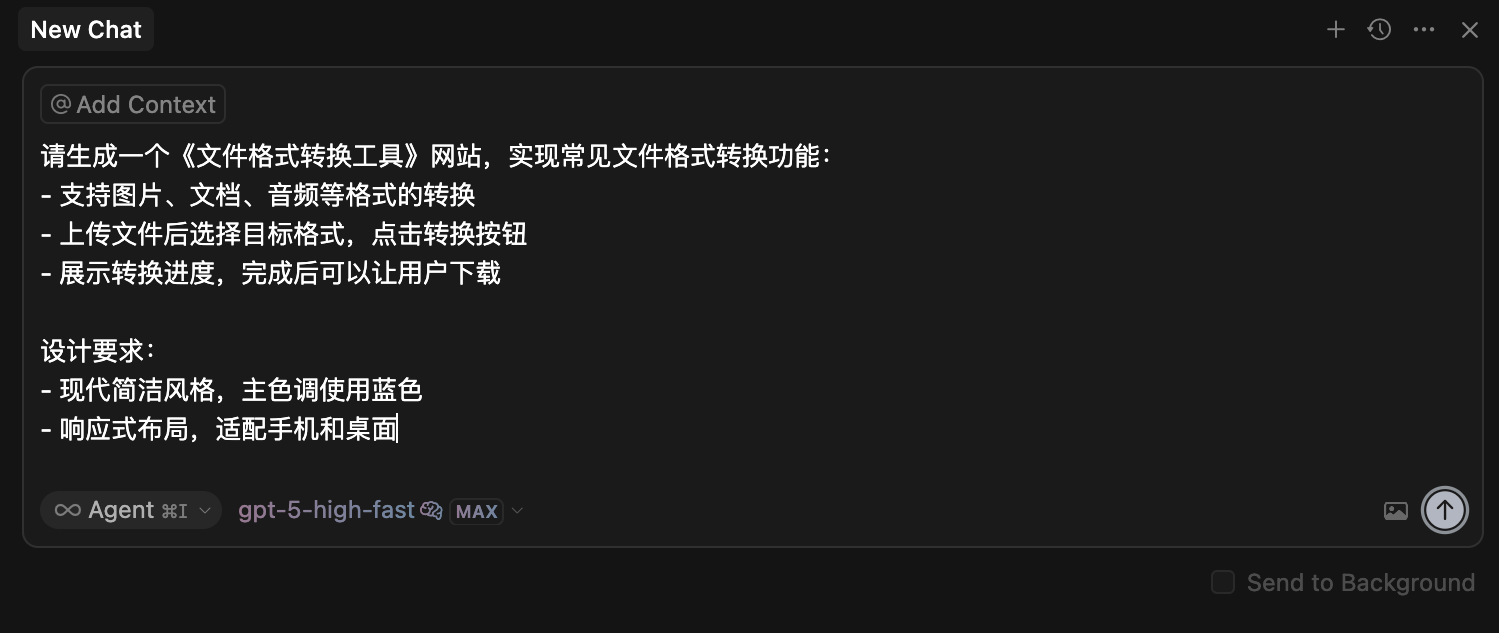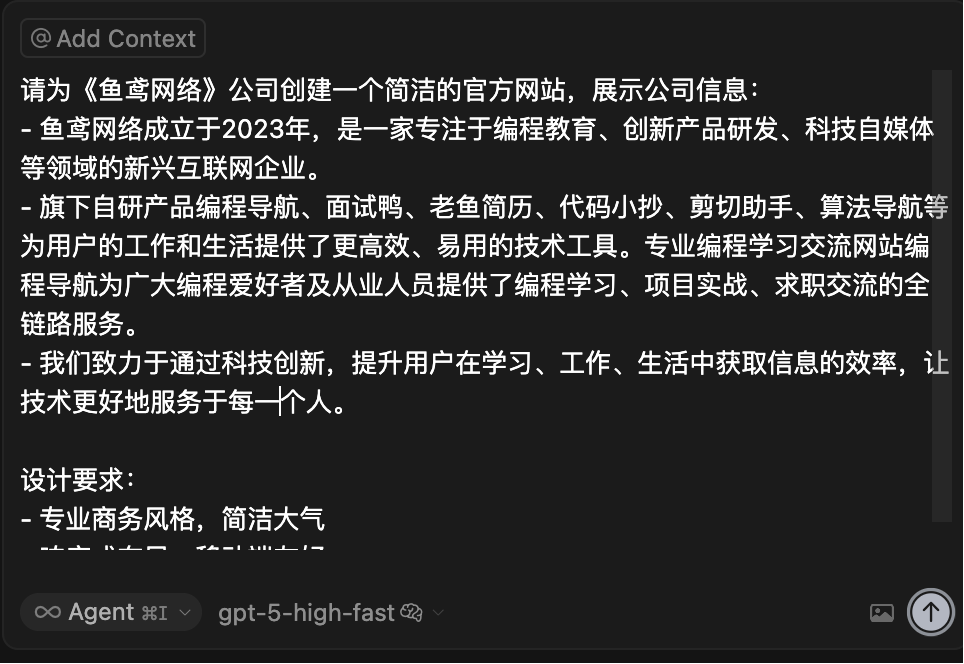 下面我用 Cursor 来体验下 GPT-5 的编程能力,看看是不是真的编程新王?