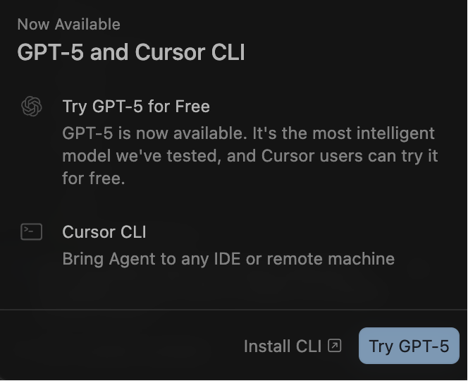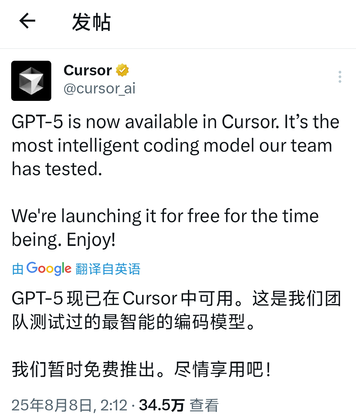 不过还有其他使用 GPT-5 的方式,比如 Cursor 工具已经第一时间接入了 GPT-5,而且提供一定的免费额度!(超额后仍需付费)