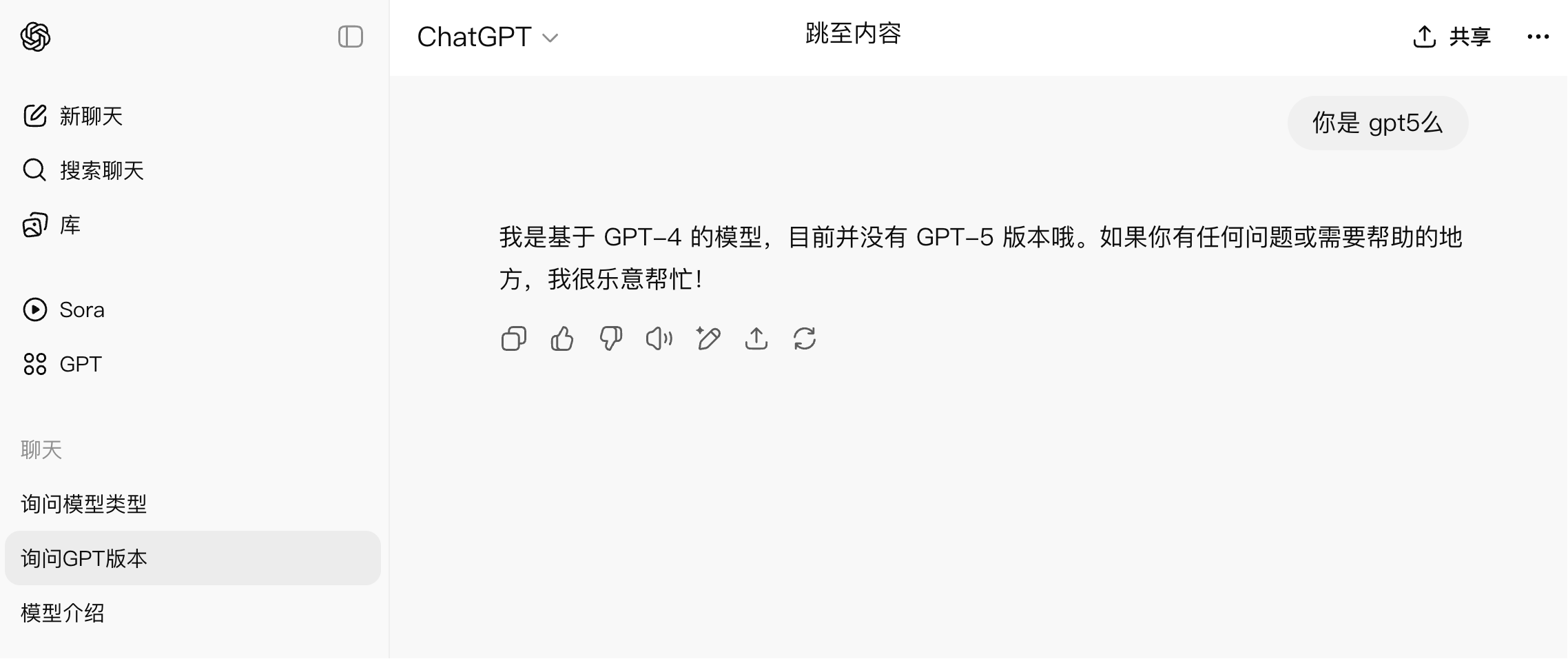 但是好像不是所有用户都能第一波吃上螃蟹,我有的账号仍然是 GPT-4,估计还要再等等: