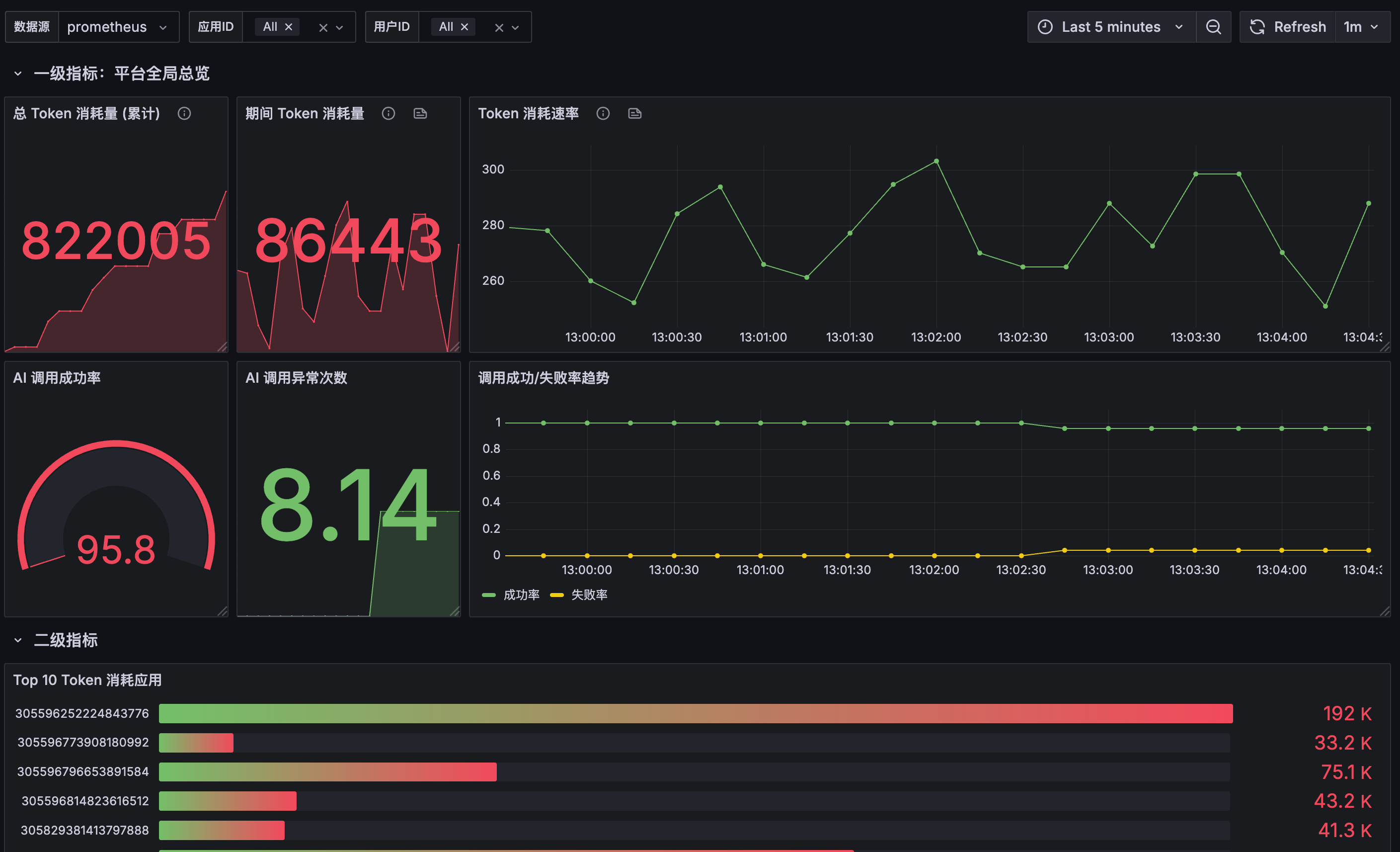 3)业务指标:针对我们平台的特定业务逻辑,比如 AI 模型调用次数、Token 消耗量、用户活跃度等。