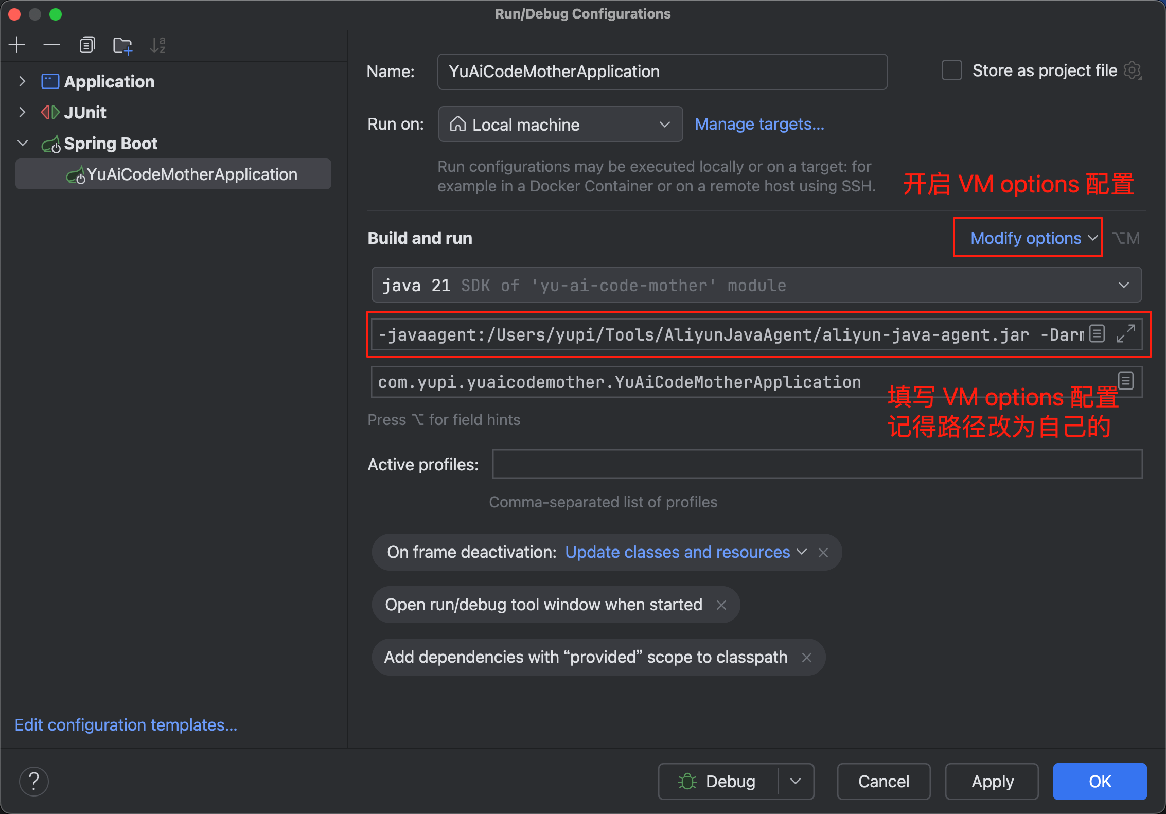-javaagent:/Users/yupi/Tools/AliyunJavaAgent/aliyun-java-agent.jar