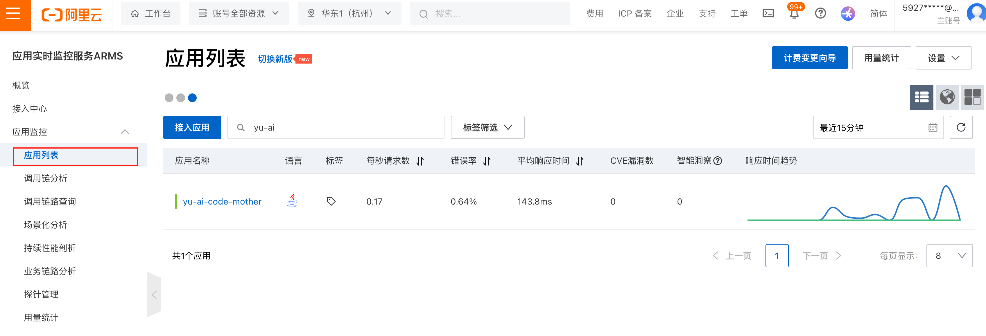 最后,回到 ARMS 控制台的应用列表页面,就能看到刚刚接入的应用了: