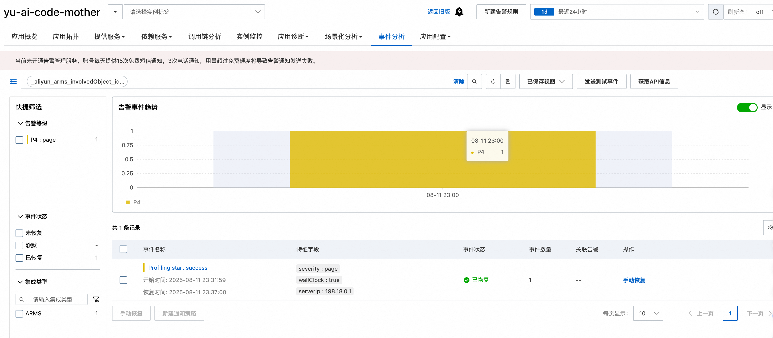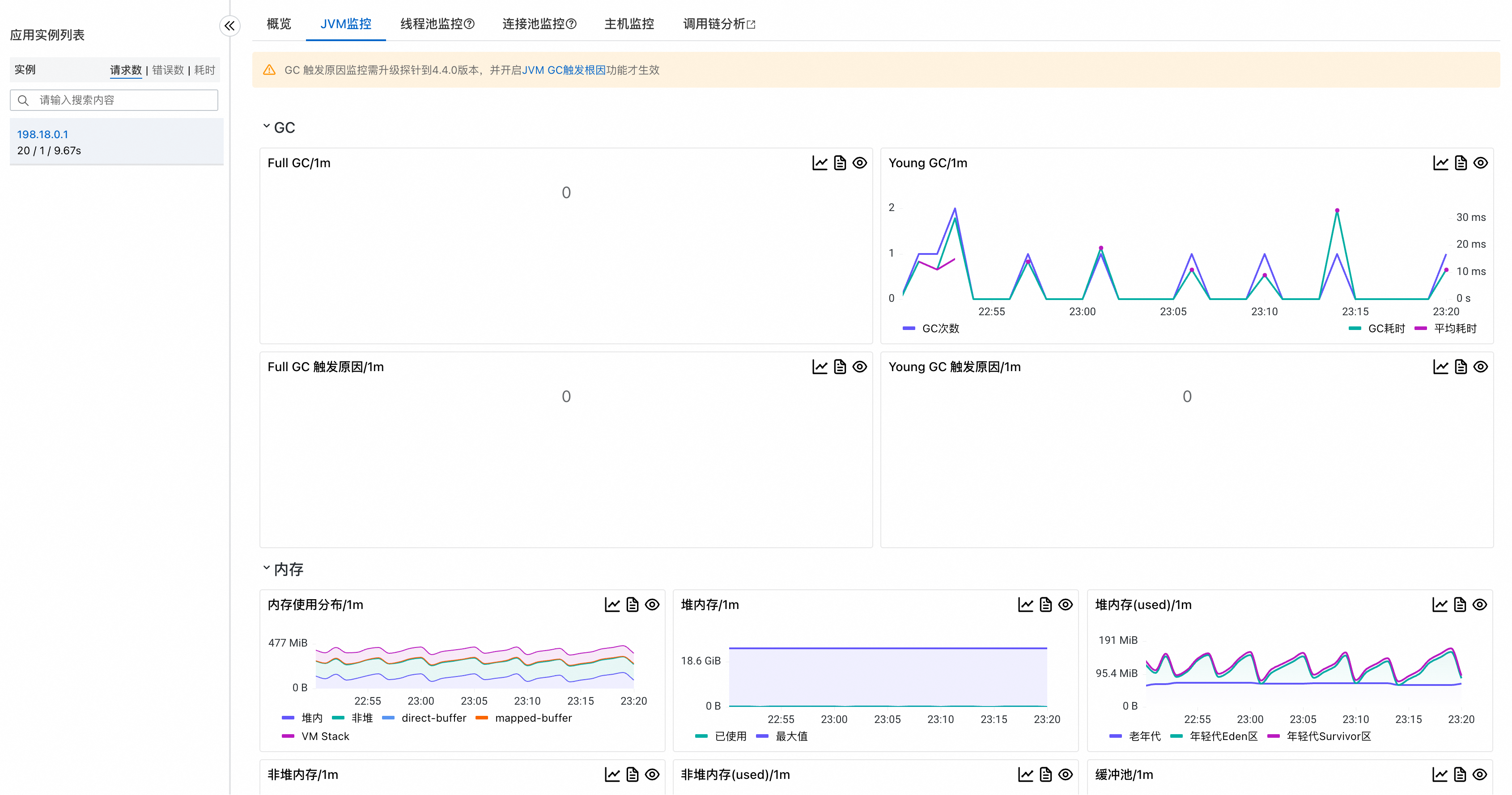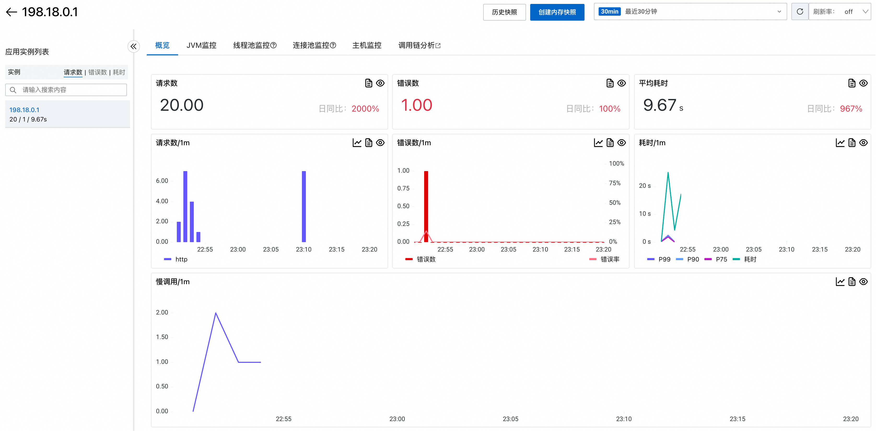 在这个页面可以看到应用的核心性能指标,包括请求数、响应时间、错误数等关键数据。